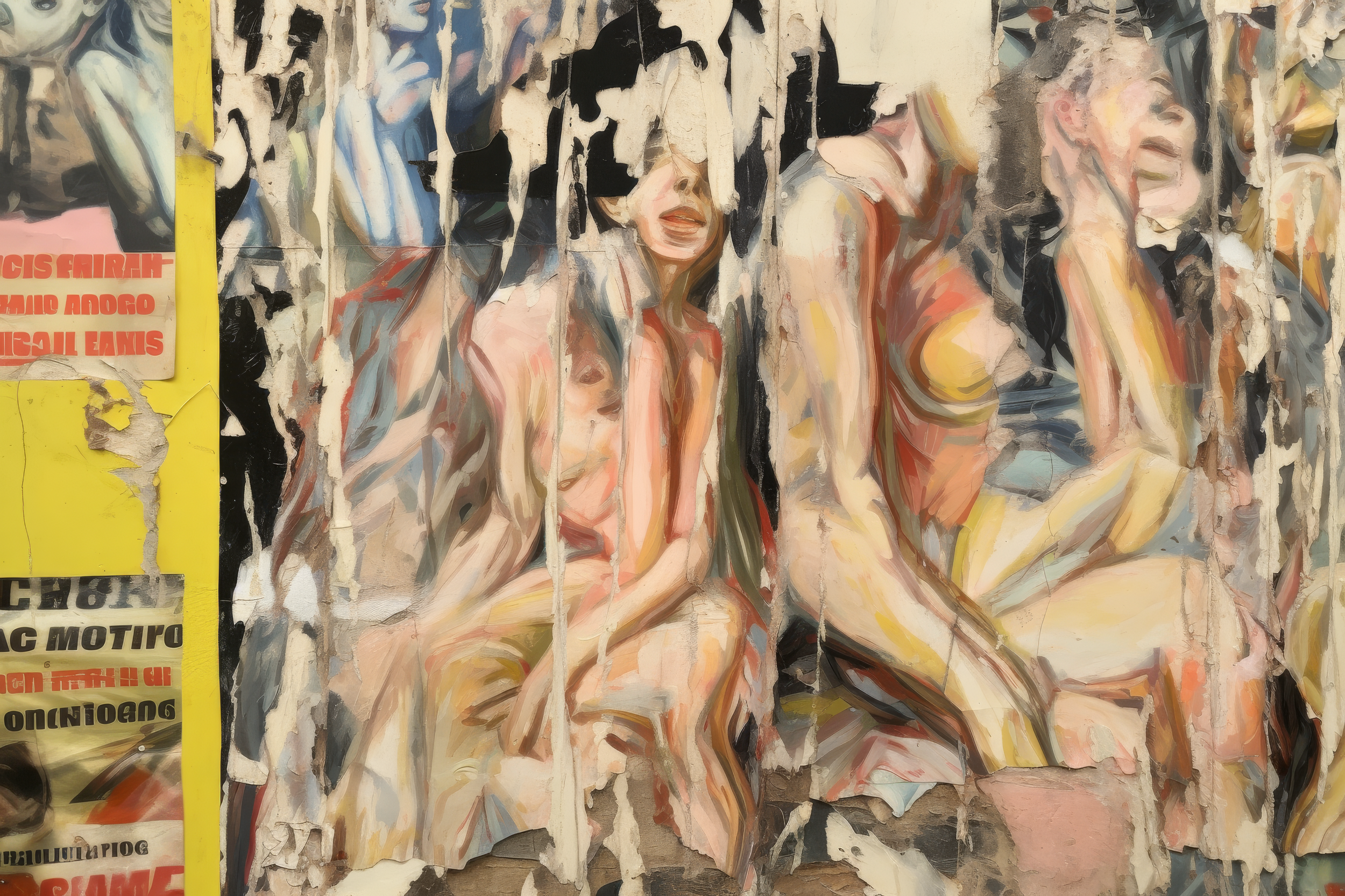 Drawing on the work of New York Abstract Expressionists, the Broad collection is punctuated by gestural brush strokes and collage, but is also inspired by David Salle’s juxtaposed and layered imagery. The Broad series is the most figurative of SLWLRNR’s works and aims to evoke an eroticism and intimacy with human form.